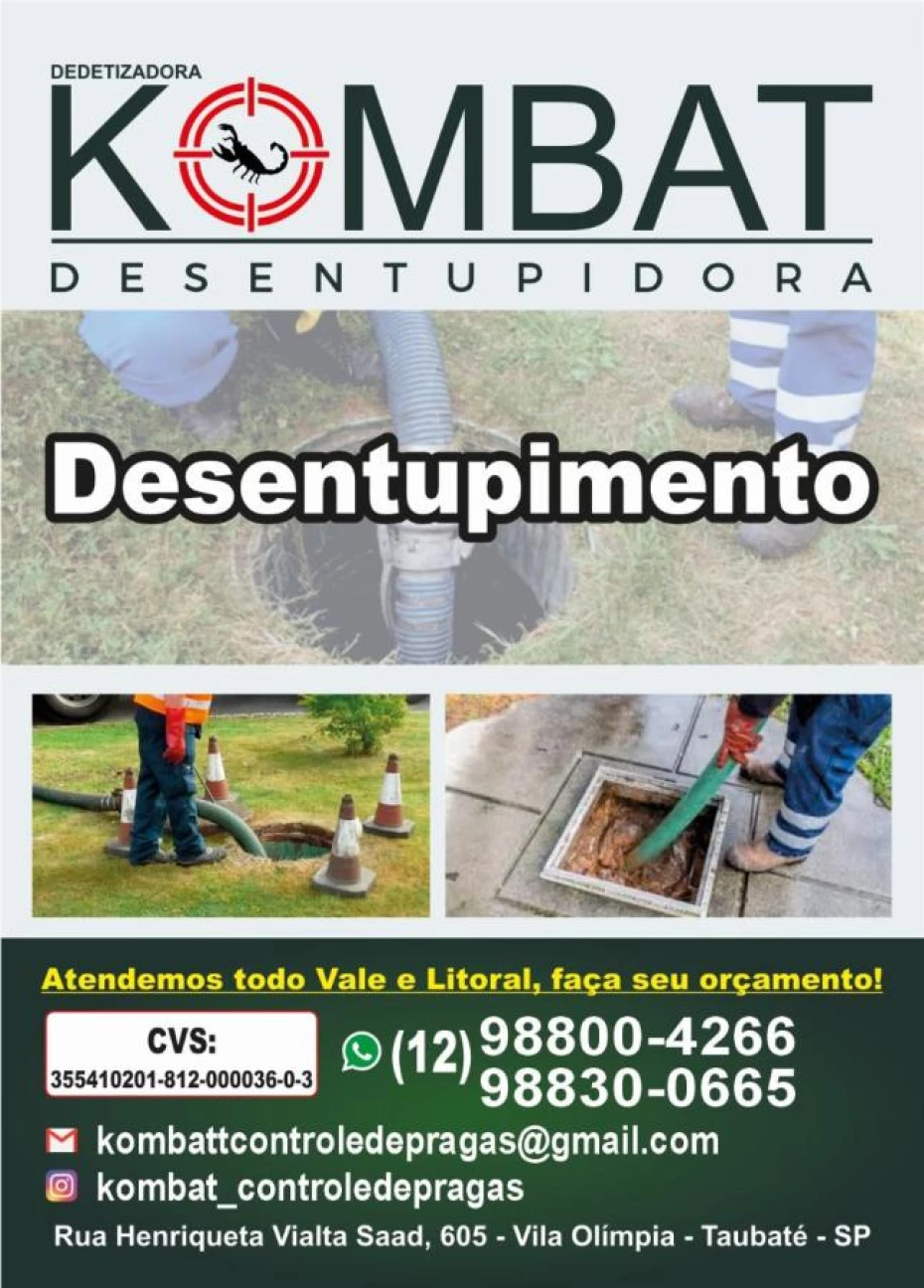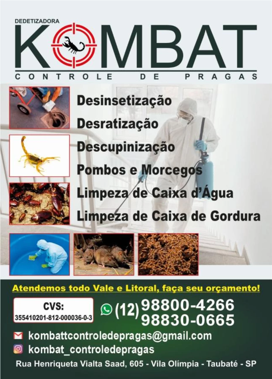 Sobre a Kombatt Controle de Pragas: Somos uma empresa especializada no controle de pragas e desentupimento, atuando com dedicação e responsabilidade. Nossa missão é proporcionar um serviço de alta qualidade, sempre com o foco na satisfação do cliente.